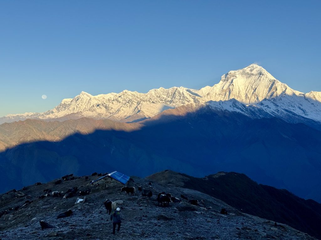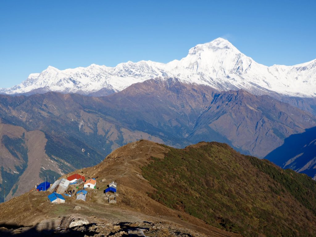 Sonnenaufgang in Khopra mit Blick auf siebthöchsten Berg der Erde Dhaulagiri (8167 m)